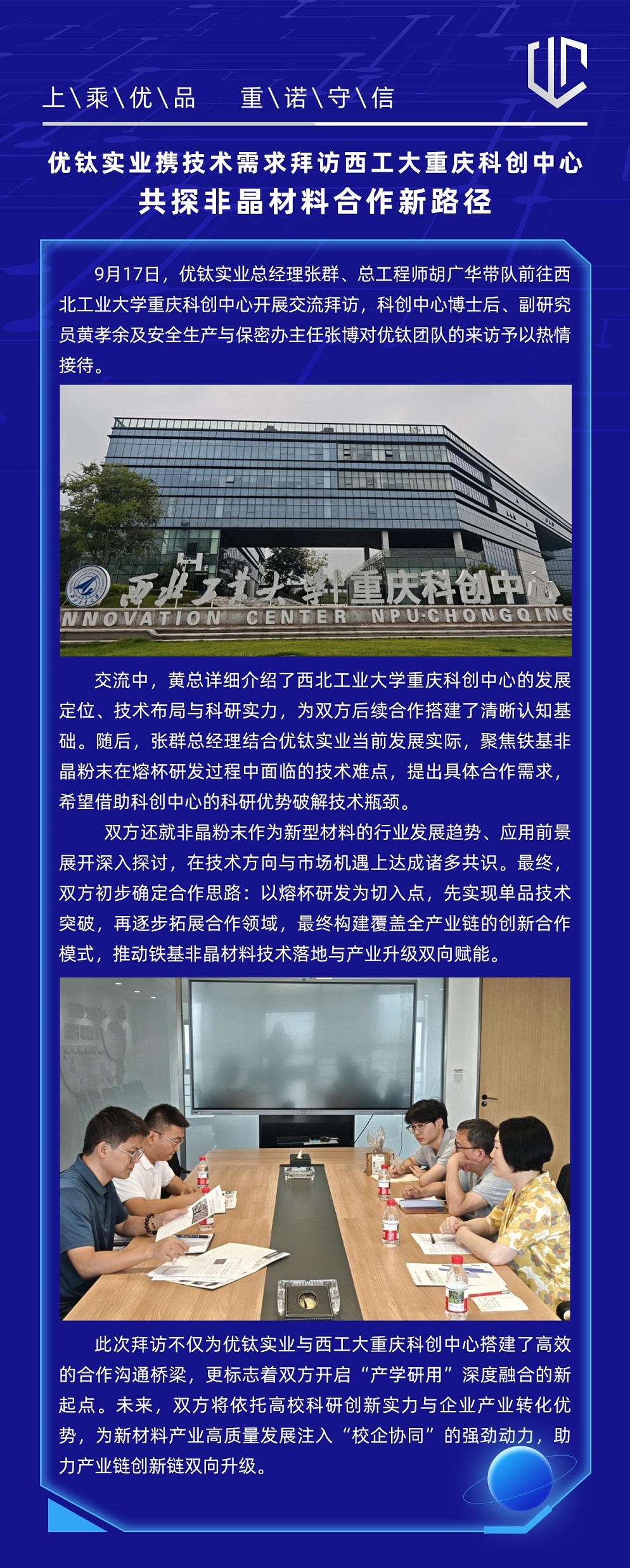 海洋之神hy590官网实业携技术需求造访西工大重庆科创中心,共探非晶质料相助新路径